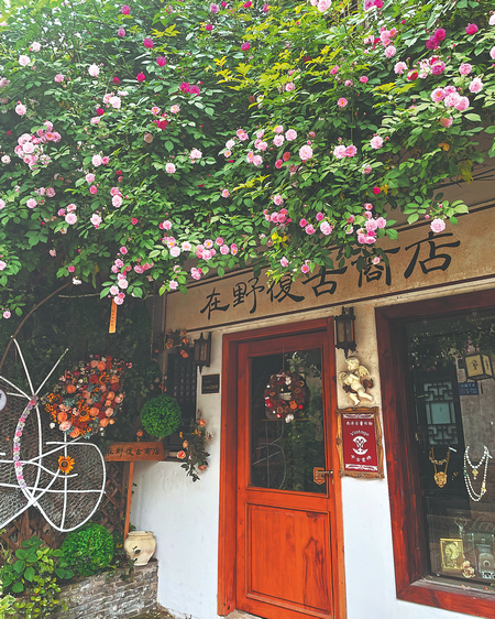 Blooming flowers adorn the front door of a store in Qingmingqiao area, Wuxi. LI YINGXUE/CHINA DAILY